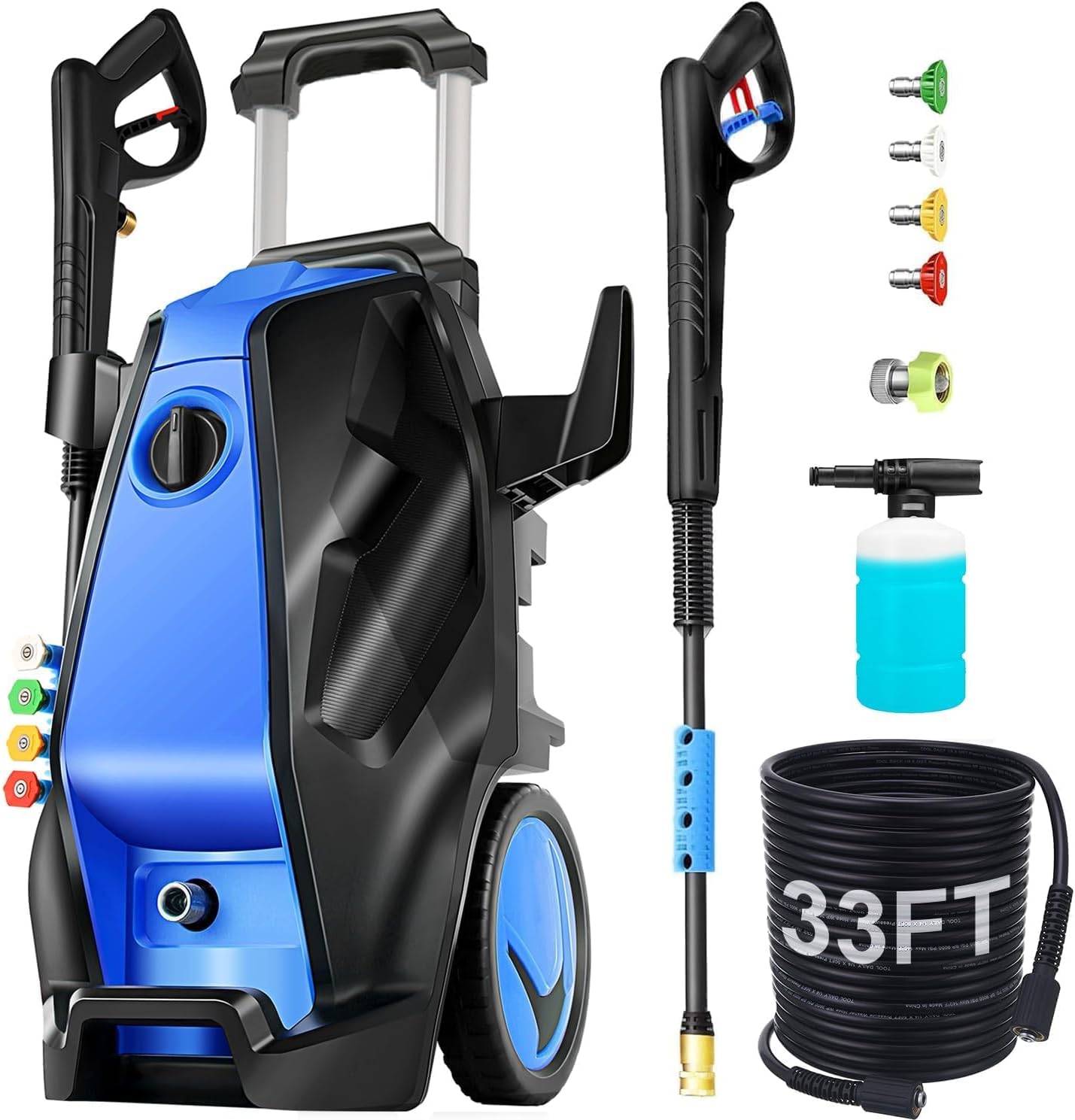 Pressure Cleaner with 33FT Hose, Foam Cannon,5 Quick Connect Nozzles